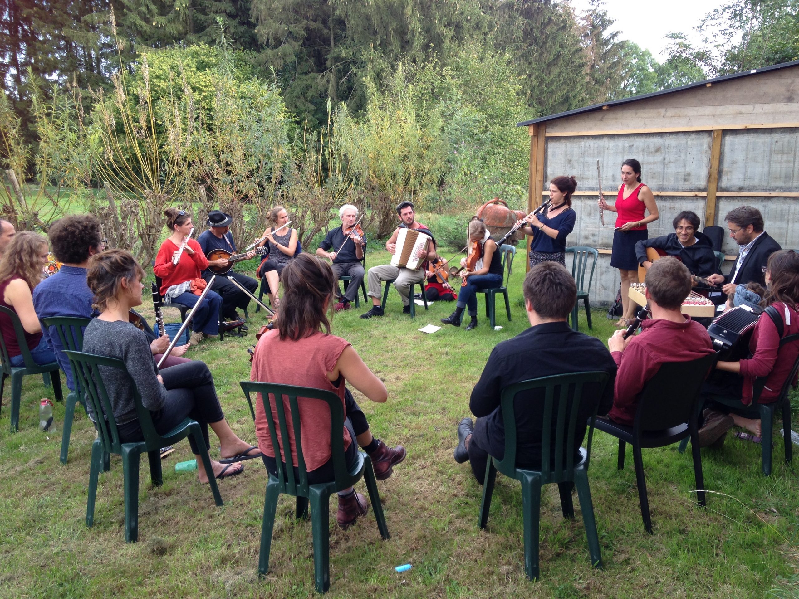 14h-17h : travail par groupes d’instruments et de niveaux puis en tutti ; apprentissage de morceaux, travail du style et des ornements