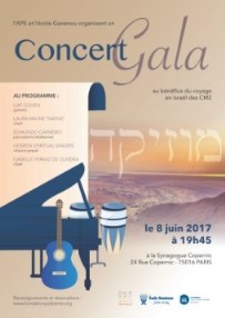 Le 8 juin 2017 à 19h45 à la Synagogue Copernic à Paris (75116), concert au profit de l’école Ganenou (« Notre Jardin »), une école qui trace une voie alternative pour répondre aux familles qui souhaitent proposer à leurs enfants un enseignement respectueux de leur identité tout en les sensibilisant à l’esprit de tolérance et de respect de l’autre. …