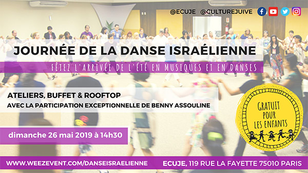 Le 26 mai 2019 de 14h30 à 17h à l'ECUJE à Paris (75010), Journée de la danse israélienne, rendez-vous festif incontournable pour découvrir la richesse et la diversité de toutes les danses israéliennes.