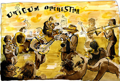 Cette année ce sera le UNICUM ORCHESTRA, groupe lyonnais de musiques du monde, qui fait revivre à sa manière les musiques d’Europe de l’Est, Klezmer ou Tsiganes, avec beaucoup d’entrain. Un mélange de reprises et de compositions