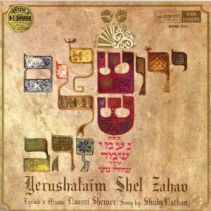 Jérusalem d’or (en hébreu : ירושלים של זהב – Yeroushalayim shel zahav) est le titre d’une chanson israélienne écrite par Naomi Shemer en 1967. Elle fut tout d’abord chantée par Shuli Nathan, avant d’être reprise par de nombreux artistes tels Rika Zaraï ou encore Ofra Haza qui l’interpréta notamment en 1998 pour la cérémonie du 50e anniversaire de l’État d’Israël. Son succès fut planétaire au point que cette chanson est considérée aujourd’hui comme le pendant, non-officiel, de la Hatikva, l’hymne de l’Etat d’Israël.